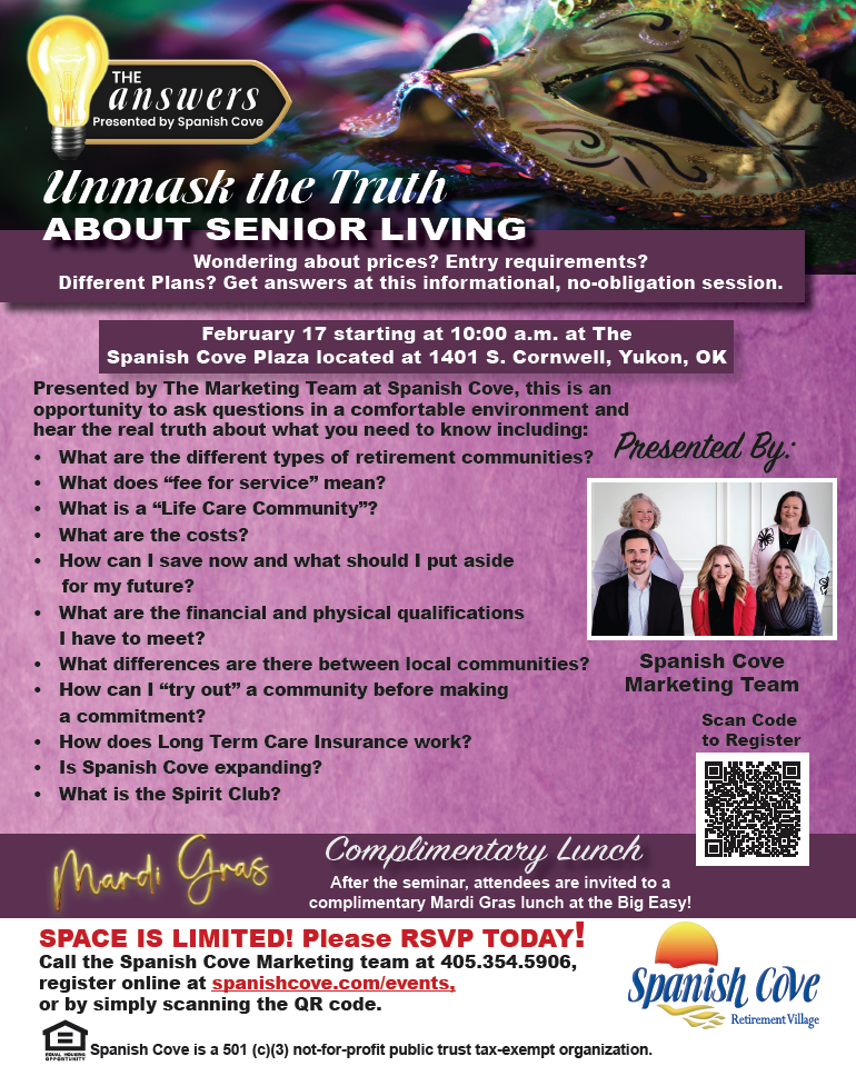 Events at Spanish Cove, whether on or off campus, aim to provide enriching opportunities for Spanish Cove residents, Charter or Spirit Club members, and Marketing Guests to fully embrace and